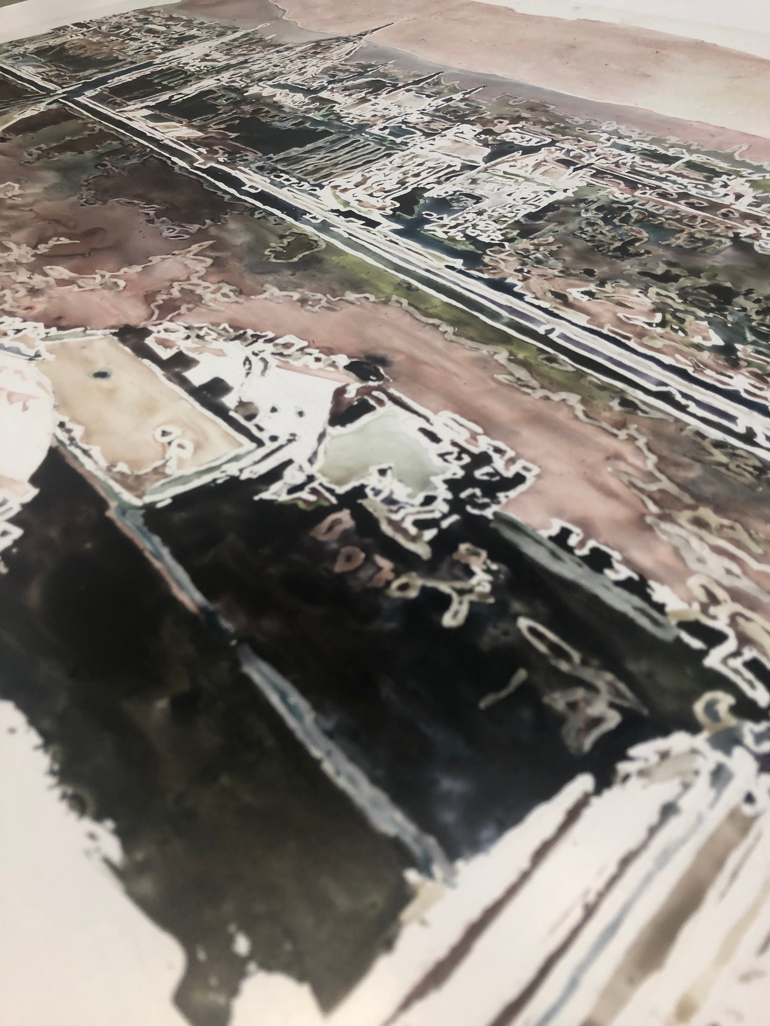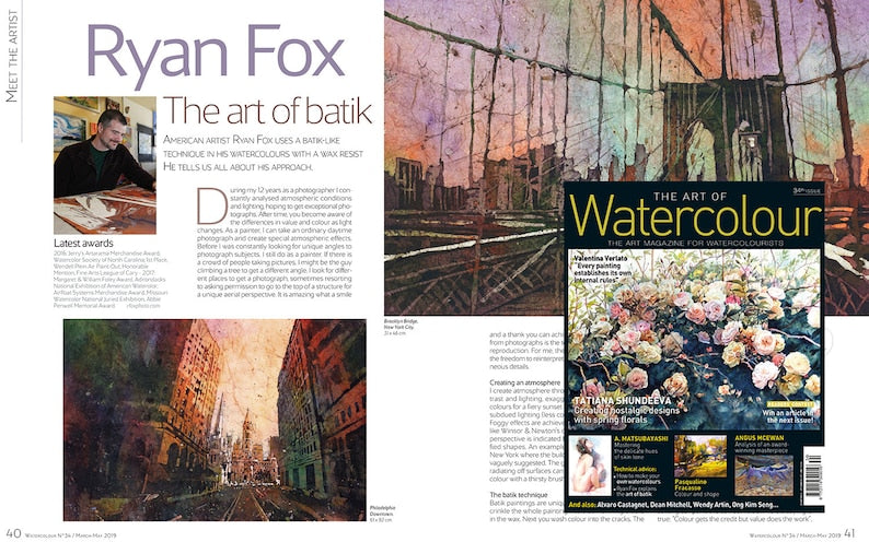 Pintado por el artista Ryan Fox. Ryan Fox es miembro exclusivo de la American Watercolour Society, así como de numerosas sociedades estatales y regionales. . Ryan ha ganado premios en las exposiciones con jurado de la Sociedad Estadounidense de Acuarela (AWS), la Exposición Nacional de Acuarelas Estadounidenses de Adirondacks, la Sociedad de Acuarela de Missouri, la Sociedad de Acuarela de Georgia (GWS) y la Sociedad de Acuarela de Carolina del Norte. Su trabajo ha aparecido en la revista Watercolour Artist, Art of Watercolour y en los libros de tapa dura Splash 15, 16, 19 y 20 publicados por F+W Media. Sus DVD instructivos son comercializados por Creative Catalyst Productions.