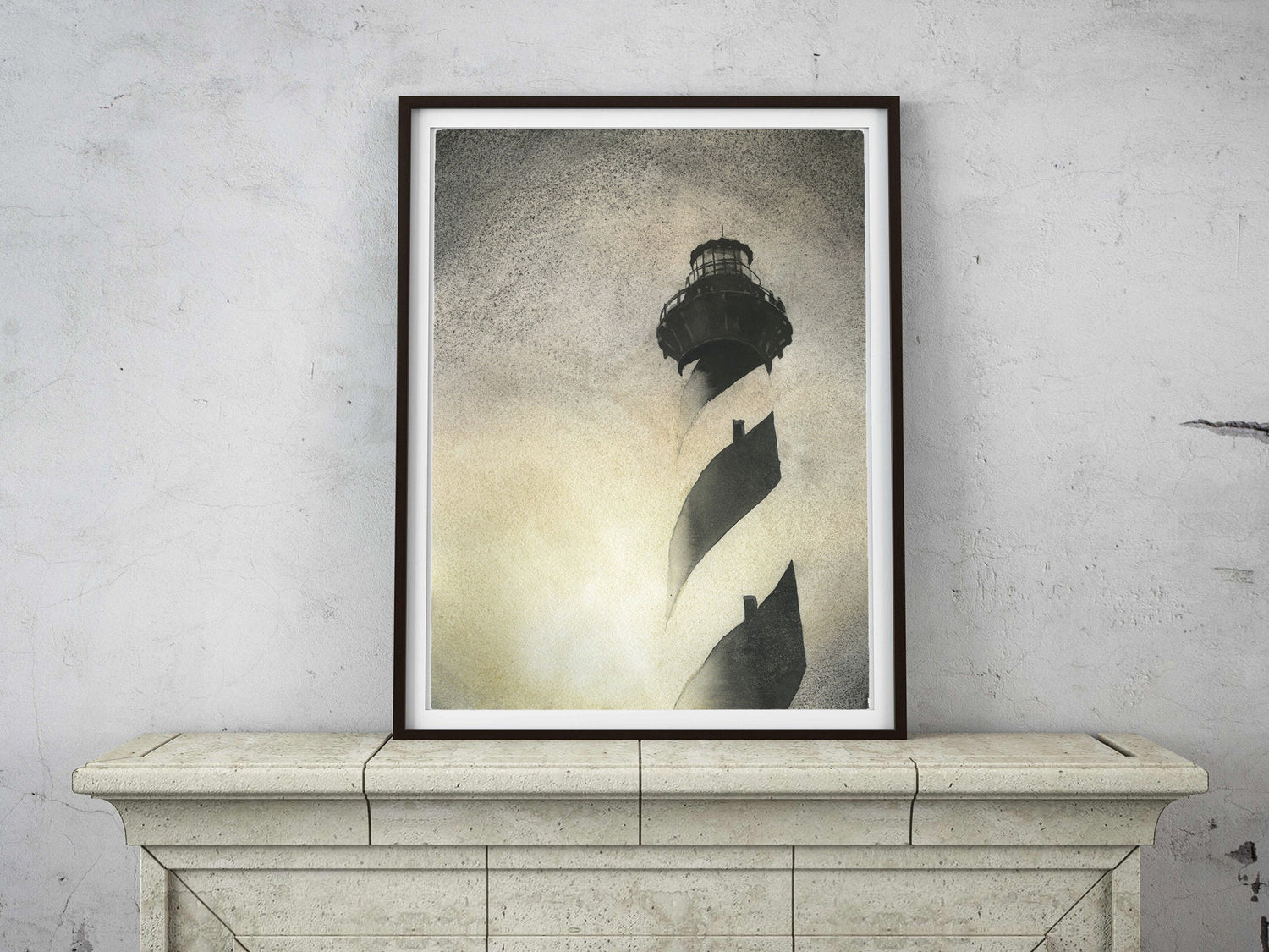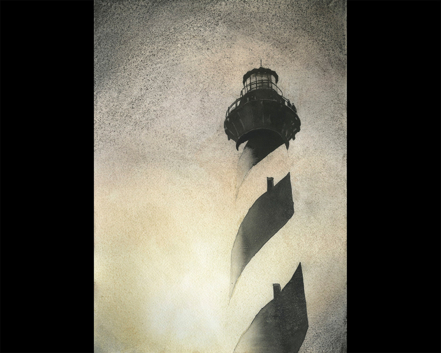 Faro de Cabo Hatteras en Outer Banks, Carolina del Norte. Pintura en blanco y negro del faro de Caper Hatteras decoración del hogar obra de arte del faro OBX pintura amarilla
