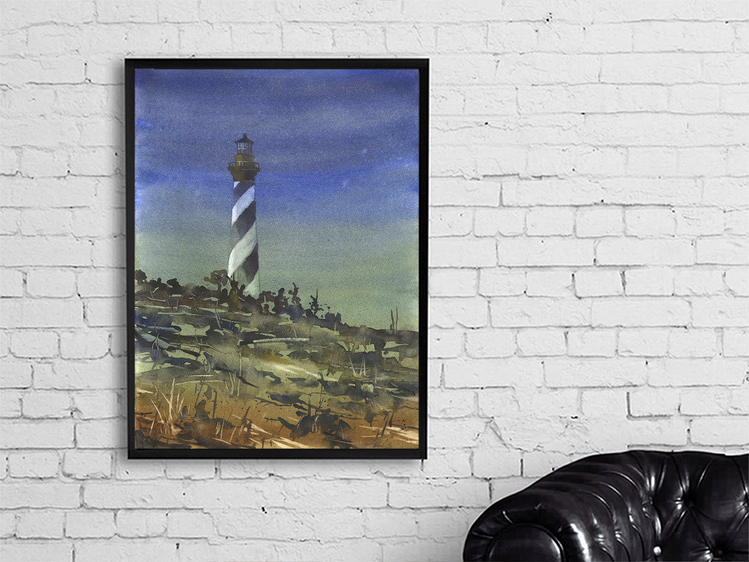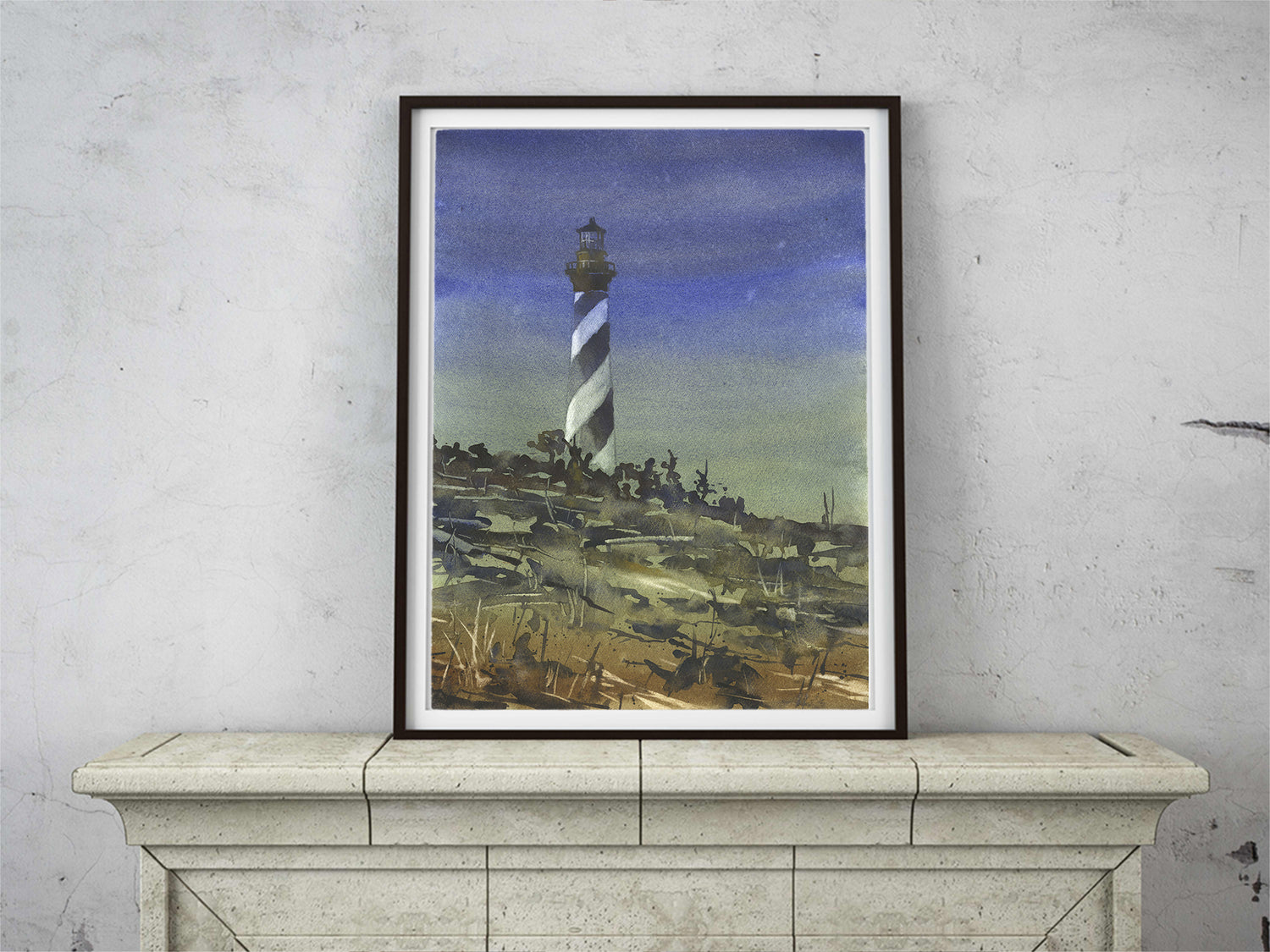 Faro de Cabo Hatteras en Outer Banks, Carolina del Norte. Obra de arte OBX pintura costera obra de arte de la casa de playa (original)