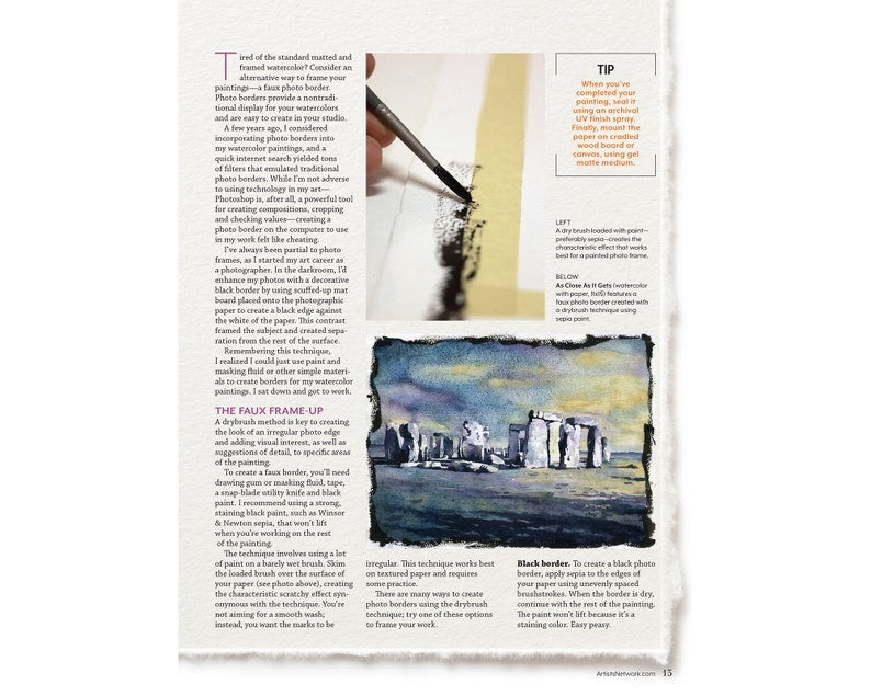 Pintado por el artista Ryan Fox. Ryan Fox es miembro exclusivo de la American Watercolour Society, así como de numerosas sociedades estatales y regionales. Ryan ha ganado premios en las exposiciones con jurado de la Sociedad Estadounidense de Acuarela (AWS), la Exposición Nacional de Acuarelas Estadounidenses de Adirondacks, la Sociedad de Acuarela de Missouri, la Sociedad de Acuarela de Georgia (GWS) y la Sociedad de Acuarela de Carolina del Norte. Su trabajo ha aparecido en la revista Watercolour Artist, Art of Watercolour y en los libros de tapa dura Splash 15, 16, 19 y 20 publicados por F+W Media. Sus DVD instructivos son comercializados por Creative Catalyst Productions.