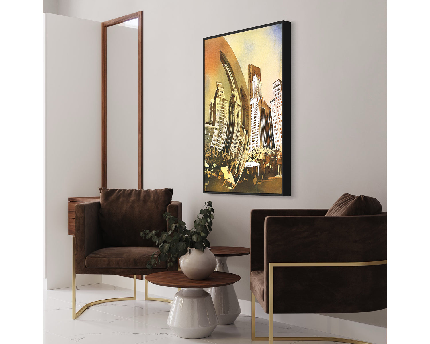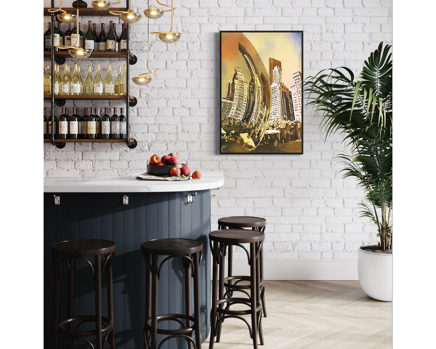 Estatua de Chicago Bean y horizonte de rascacielos en Millennium Park- Chicago, Illinois (EE.UU.). Arte de Chicago acuarela del centro de Chicago (original)