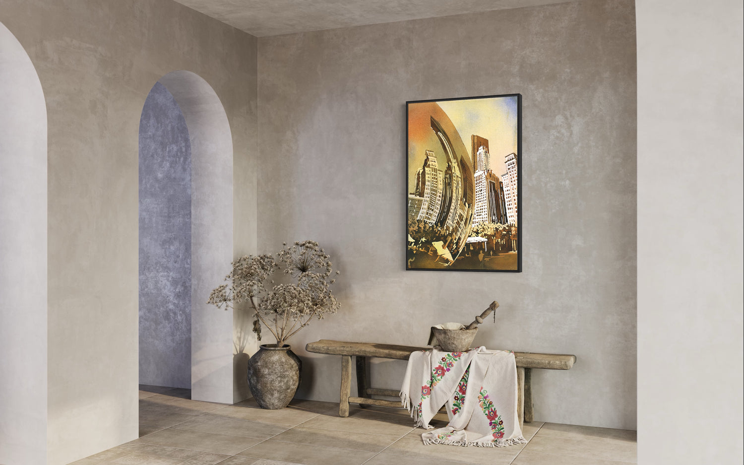 Impresiones de bellas artes disponibles: https://ryanfoxpainting.myshopify.com/products/chicago-bean-statue-and-skyscraper-skyline-in-millennium-park-chicago-illinois-usa-chicago-art-downtown-chicago-watercolor -obra de arte
