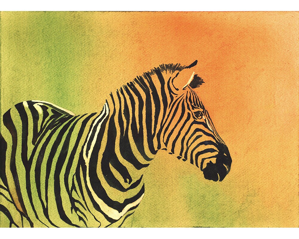 Pintura de acuarela de bellas artes de cebra- impresión giclee. Pintura de acuarela de cebra, reproducción giclee de pintura de cebra, acuarela de cebra