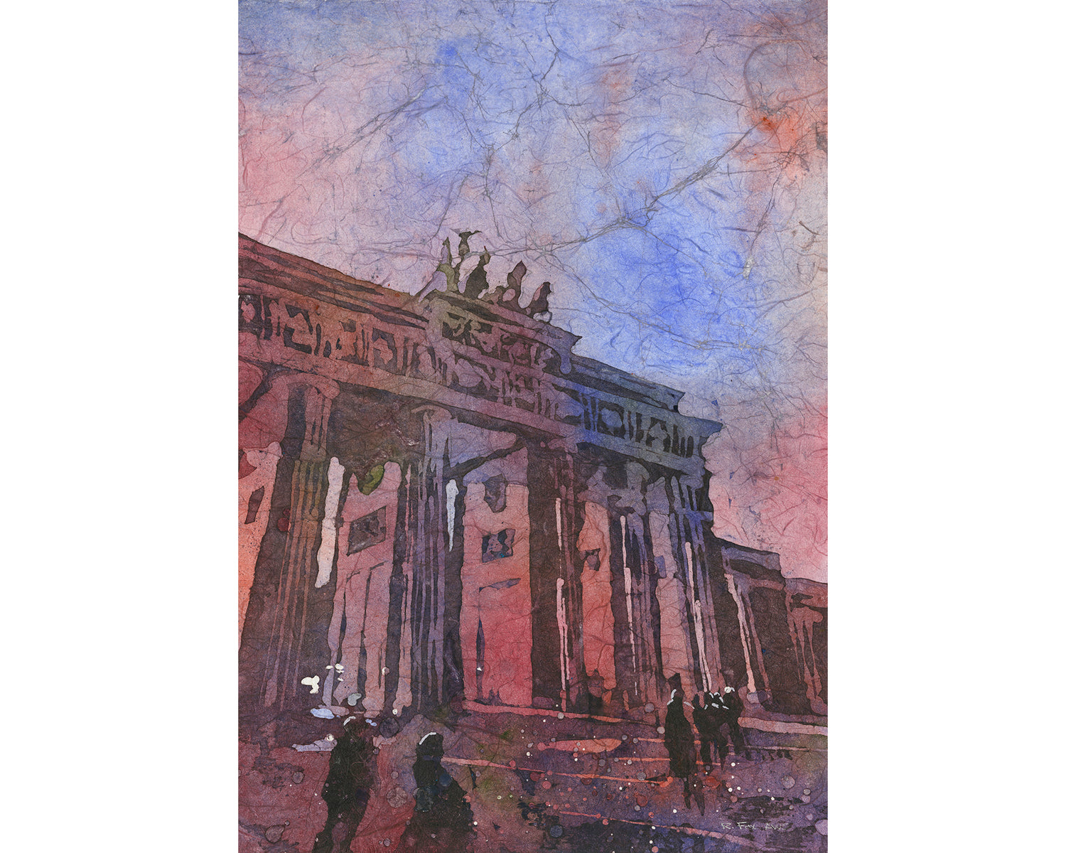 Brandenburg Gate Berlin Germany watercolor batik landscape travel gift giclee (print)