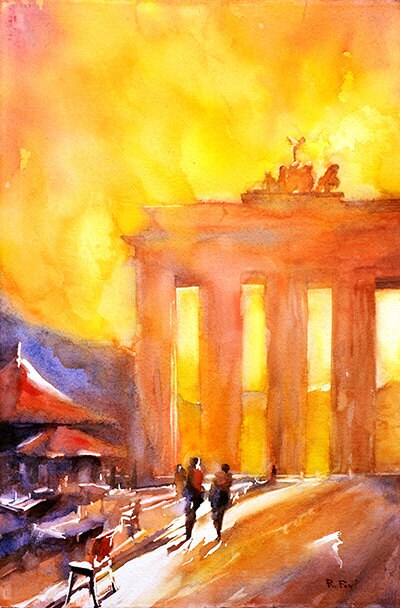Brandenburg Gate- Berlin, Germany watercolor fine art print landscape painting travel essentials (original)