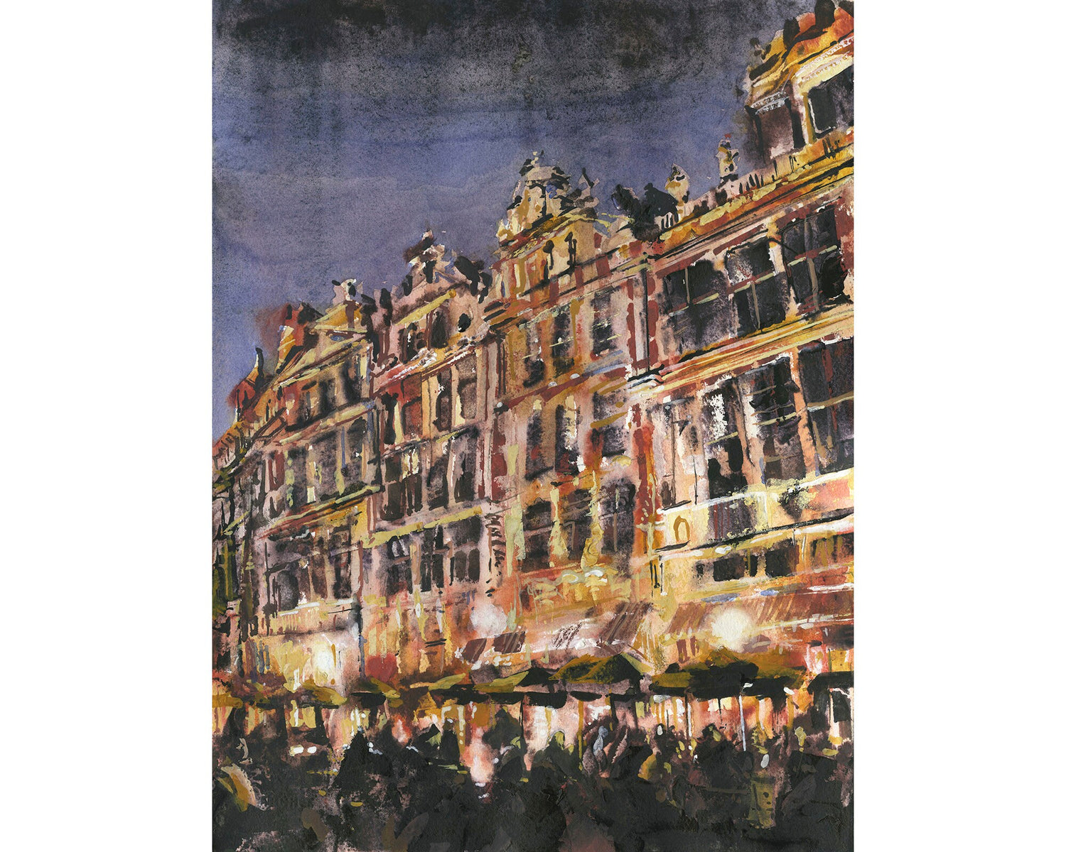 Brussels Grand Place market square art. Painting of gilded hall on Market Square in downtown Brussels, Belgium. Watercolor Brussels art (print)