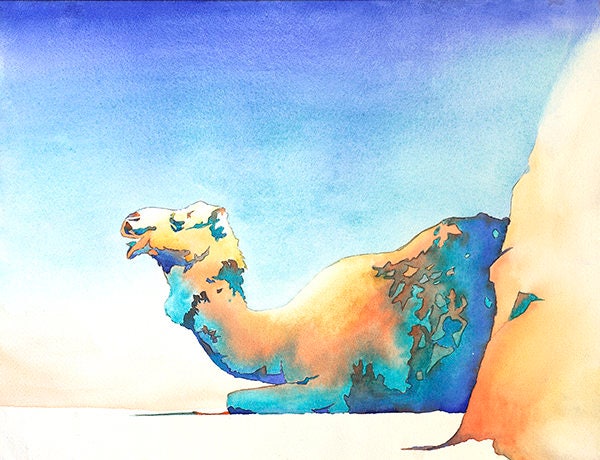 Camel resting on ground- fine art watercolor painting. Original watercolor painting camel, wall art camel giclee, animal art (print)
