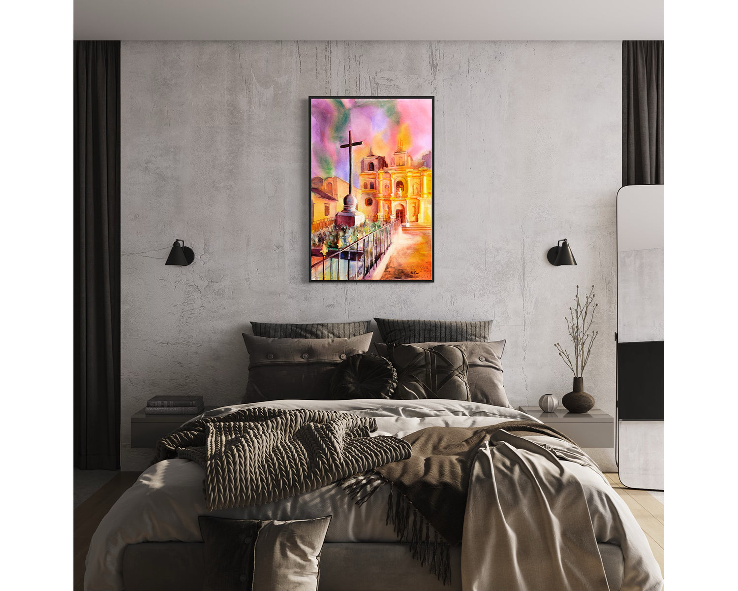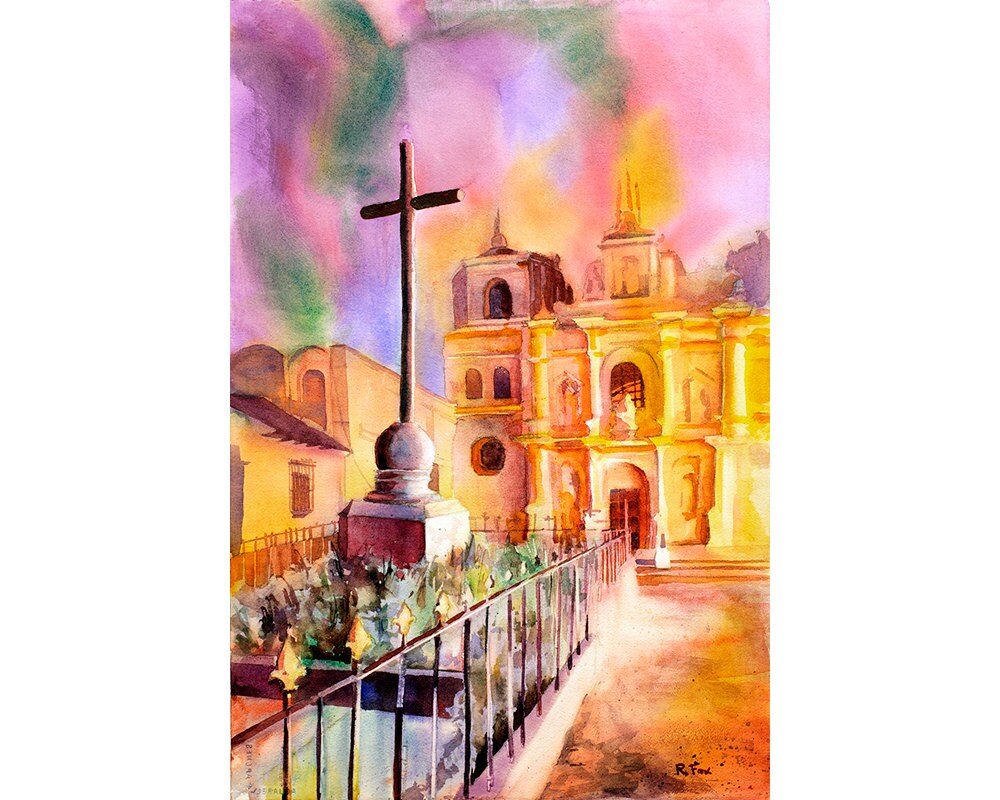 Church in Antigua, Guatemala Art Antigua painting Watercolor Antigua Guatemala art Watercolor print Colorful art church (print)