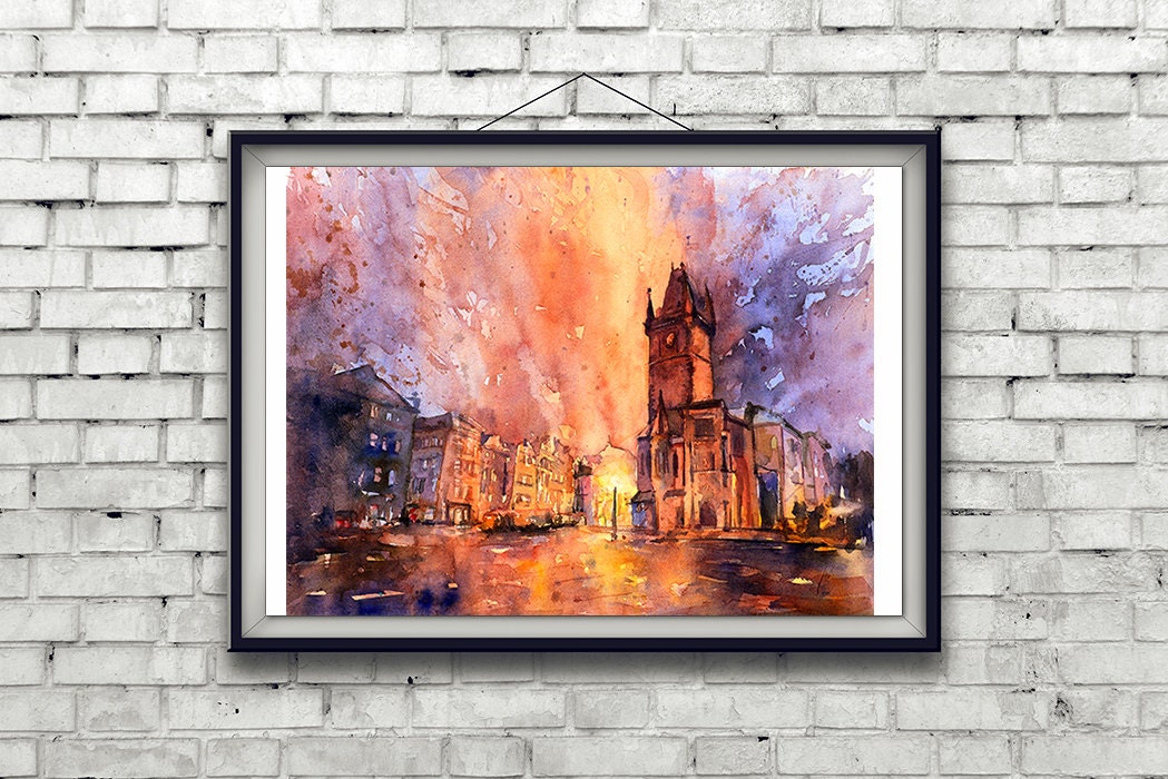 Materials: watercolour, fine art, giclee, watercolor original, Prague painting, watercolor print, Czech Republic, watercolor painting, art print, Prague photograph, Prague watercolor, wall art, Prague artwork