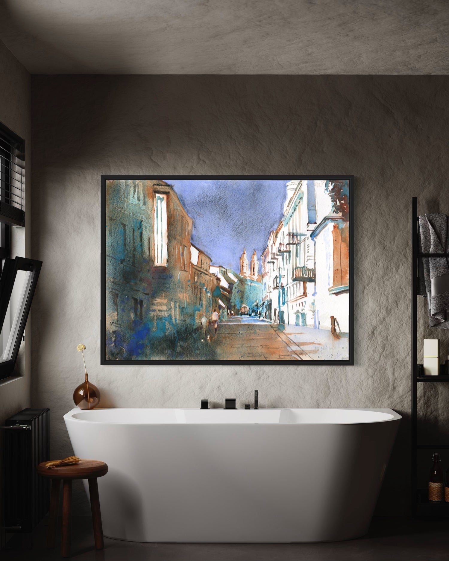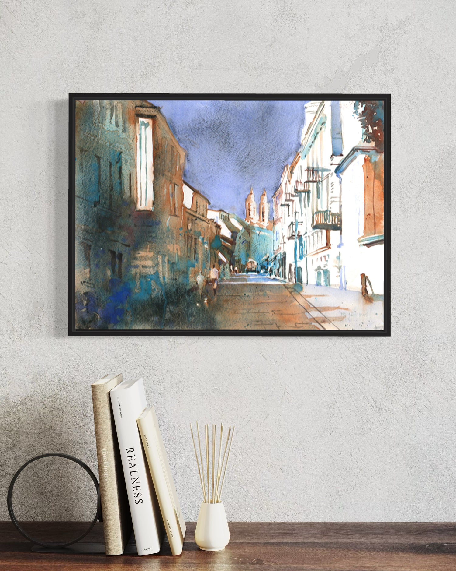 Every brushstroke in this painting tells a story of adventure, discovery, and the intimate bond between father and son. Inspired by a fleeting, golden moment captured during our annual European journey, this piece is far more than a replication of a photograph—it is a portal to an experience. Each year, I guide my son through the quiet streets of dawn and the hushed beauty of twilight, immersing him in cultures, flavors, and traditions that shape both of us. These watercolor masterpieces, lauded for their vivid depth and emotional resonance, are imbued with the essence of those rare, unrepeatable moments. With every layer of color, I distill not just the beauty of a place but the soul of an experience—one that can never be replicated, only preserved in art. Owning this painting is not just acquiring a work of art; it is possessing a fragment of a journey, a whisper of time, and a vision of the world seen through the eyes of a traveler, a father, and an artist.