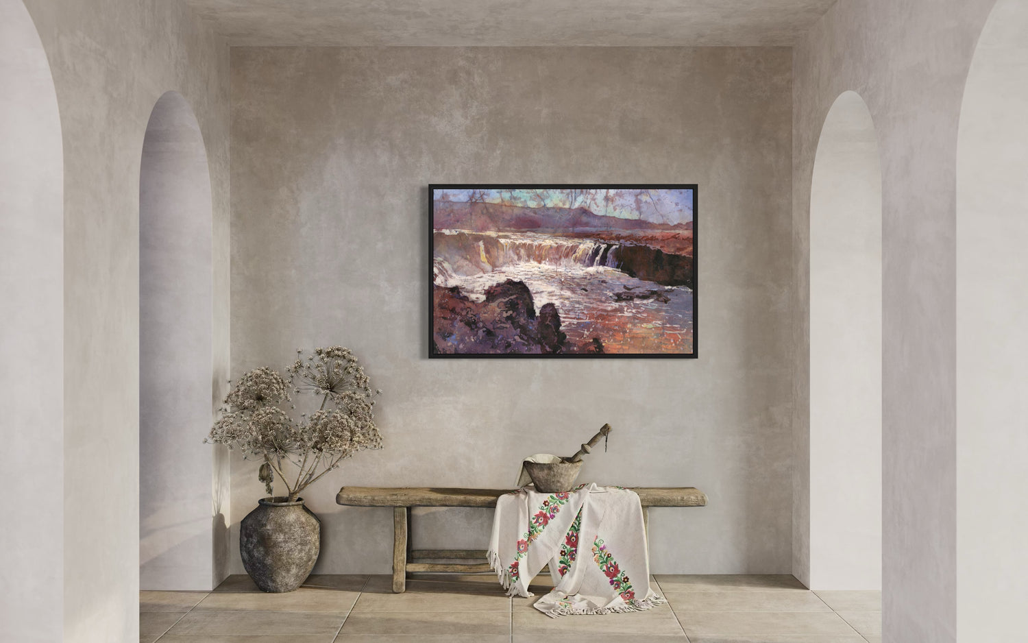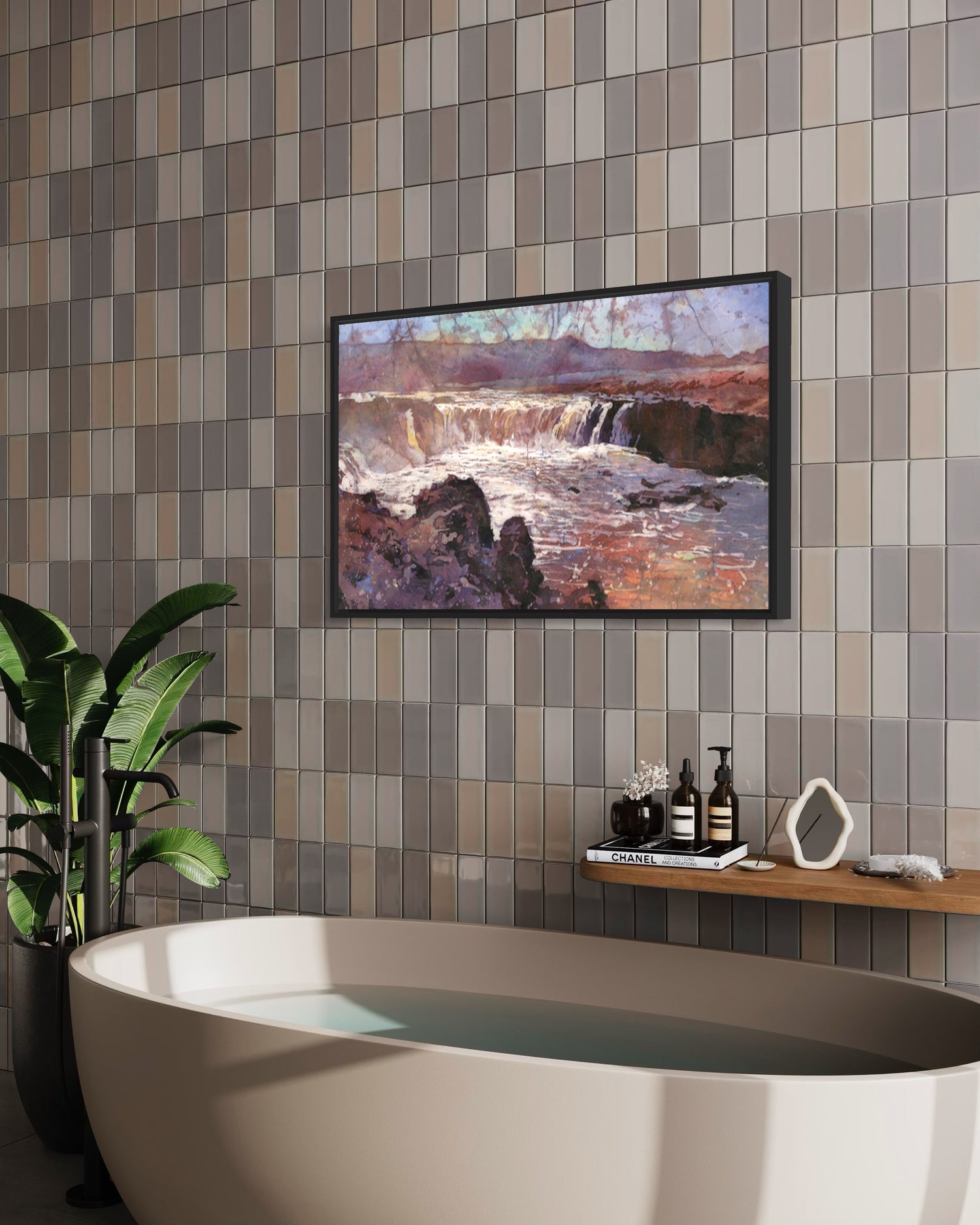 Colorful Iceland waterfall landscape painting, fine art print Icelandic home decor housewarming gift travel essentials