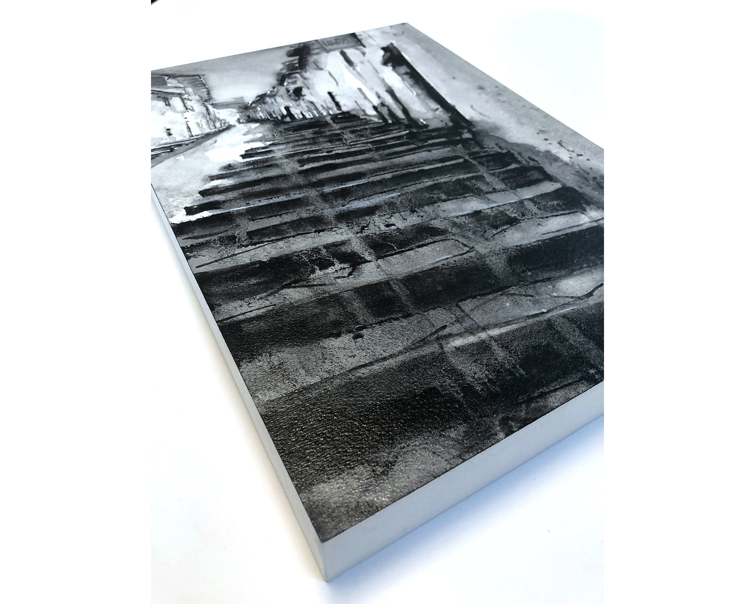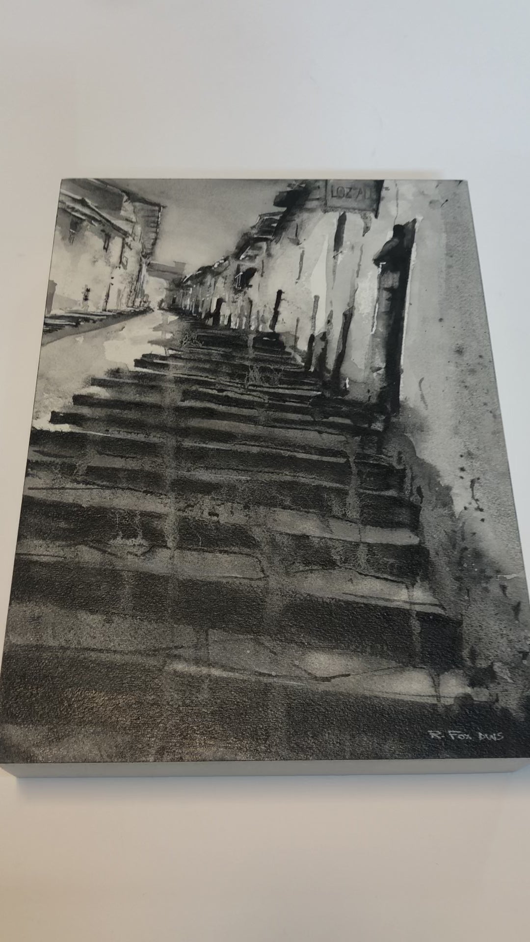 Cusco fine art watercolor painting- Peru. Street scene in Incan city of Cusco, Peru fine art watercolor painting B&W artwork Cusco street.