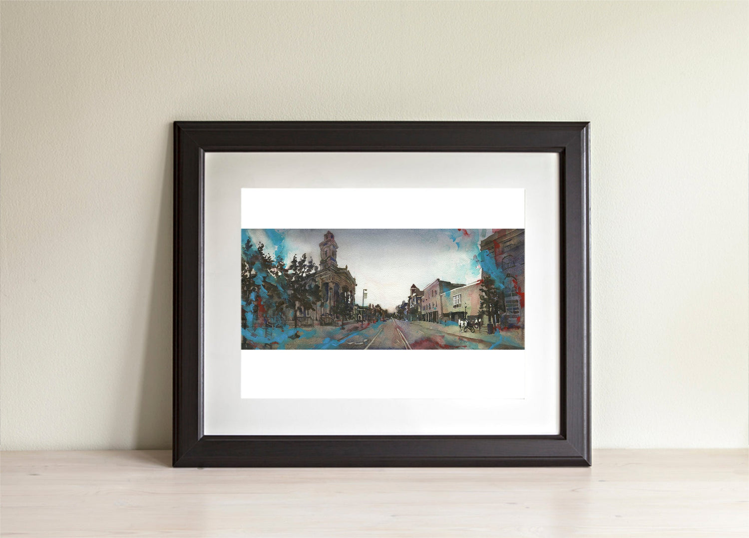 Downtown Chillicothe historic center. Watercolor painting Chillicothe OH downtown skyline art architecture business district (original)