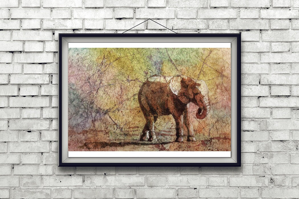 Elephant watercolor batik painting. Elephant art watercolor painting elephant, painting elephant art, watercolor batik artwork of elephant (print)