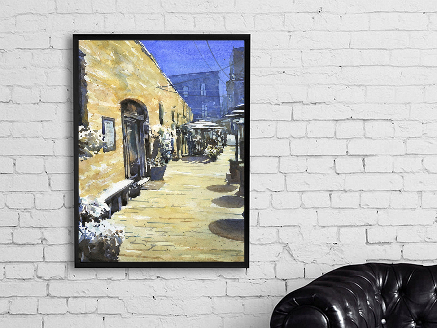 This painting is based on the artist’s original travel photograph (or imagination). This is a real watercolor painting (no AI art). Fine art prints are scans/photographs of the original painting. Prints are made in the USA- no third party overseas dropshipping. Every print/painting is physically inspected &shipped by the artist. Your purchase helps a real-life living artist- a small business of one person supporting a family.
