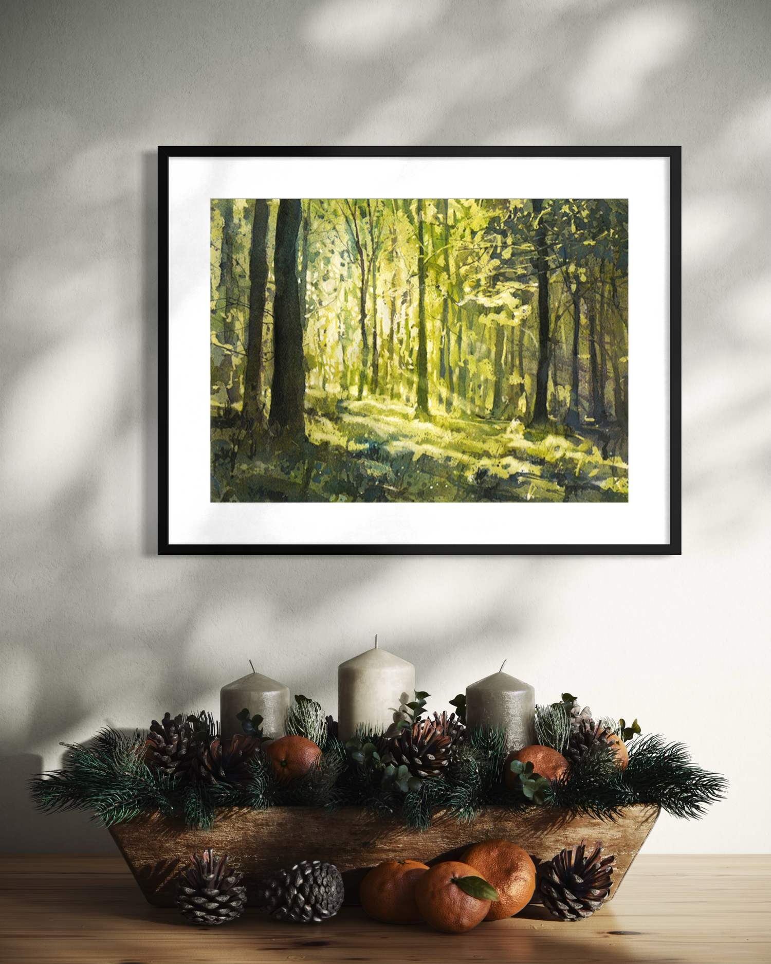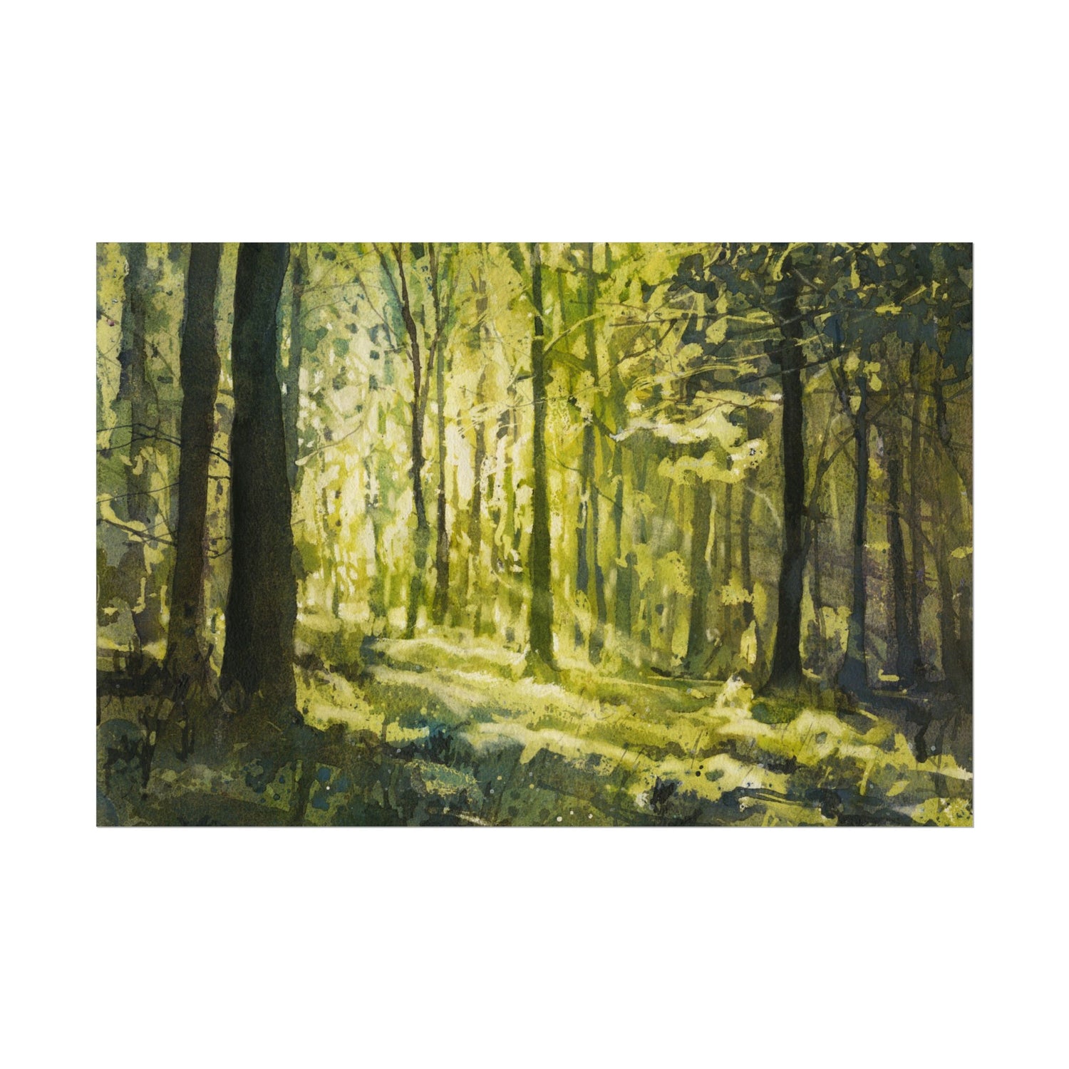 Forest Light Watercolor Poster — Textured Matte Wall Art