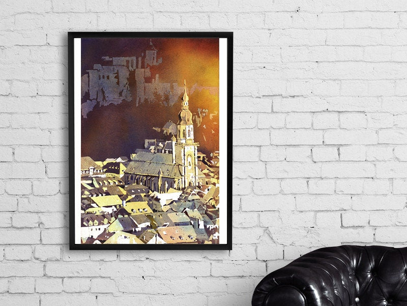 Heidelberg Germany art. 13th century Church of Holy Spirit in city of Heidelberg, Germany. Wall art Heidelberg colorful art (print)