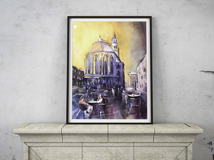Heidelberg, Germany- watercolor painting of 13th century Church of the Holy Spirit. Wall art Germany painting, Heidelberg (print)