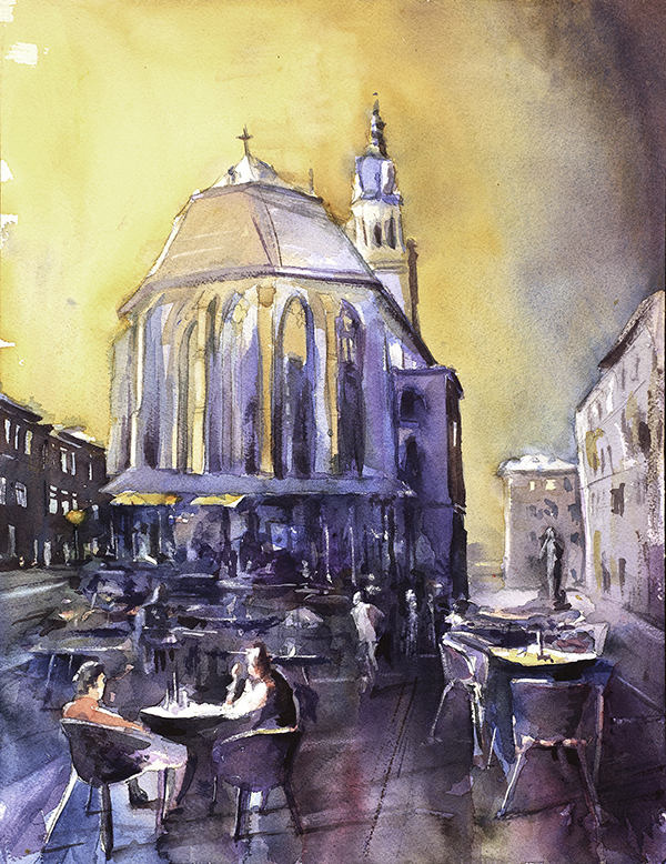 Painted by artist Ryan Fox. Ryan Fox is a signature member of the American and National Watercolor Societies, as well as many state and regional associations. Ryan has won awards in The American Watercolor Society (AWS), Adirondacks National Exhibition of American Watercolors, Missouri Watercolor Society, Georgia Watercolor Society (GWS), and Watercolor Society of North Carolina juried shows. His work has been featured in Watercolor Artist Magazine, Art of Watercolour, and Splash 15, 16, 19 &20 hardcover books published by F+W Media. His instructional DVDs are marketed by Creative Catalyst Productions.