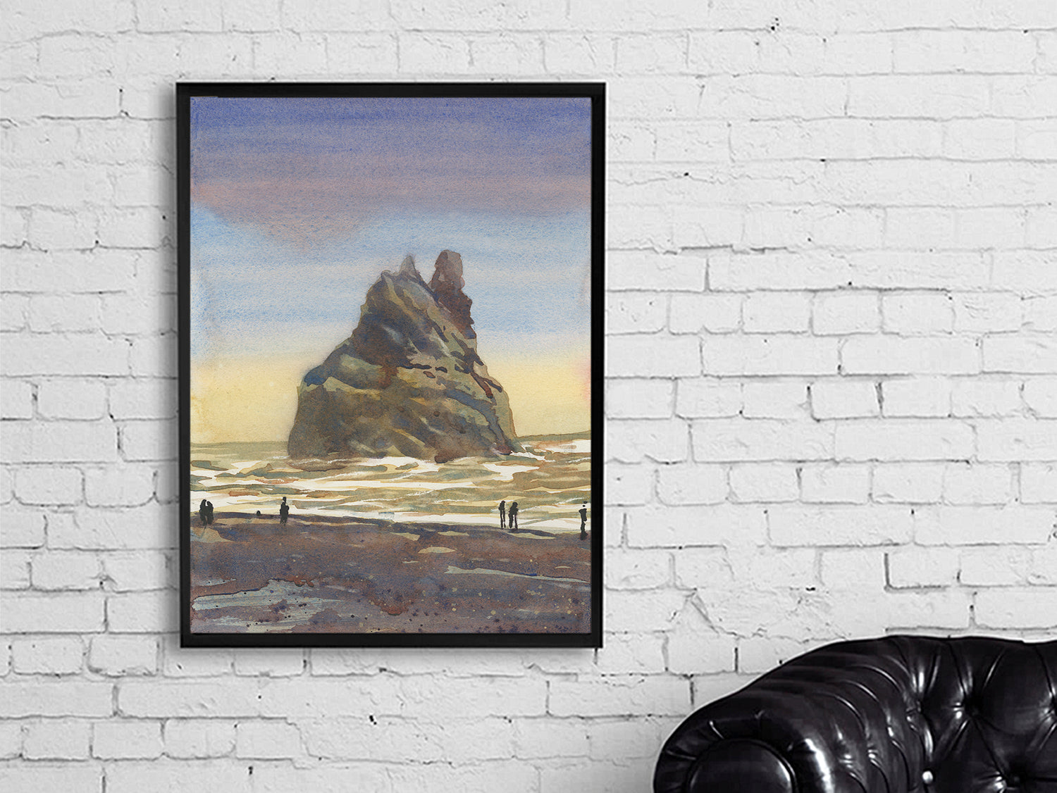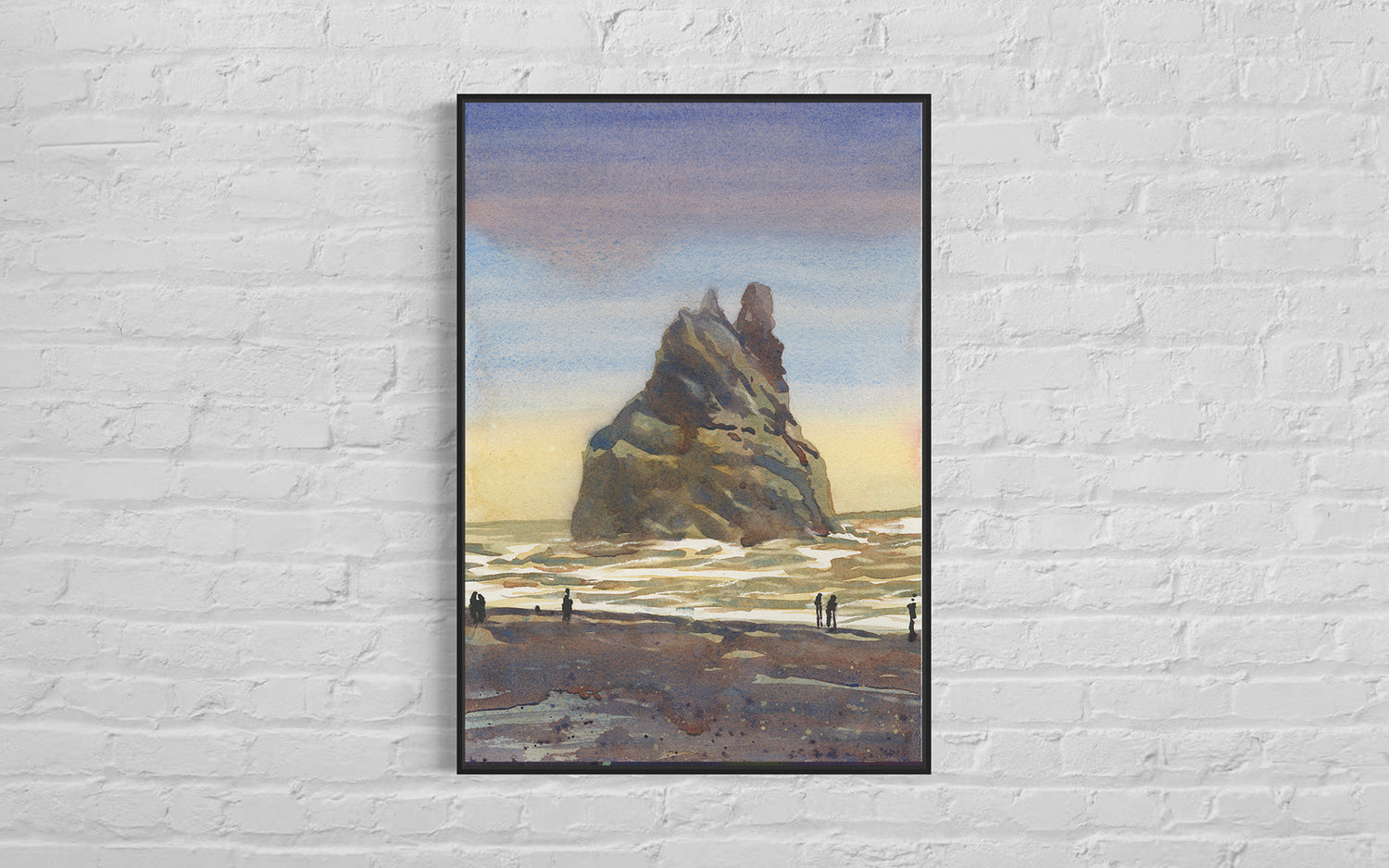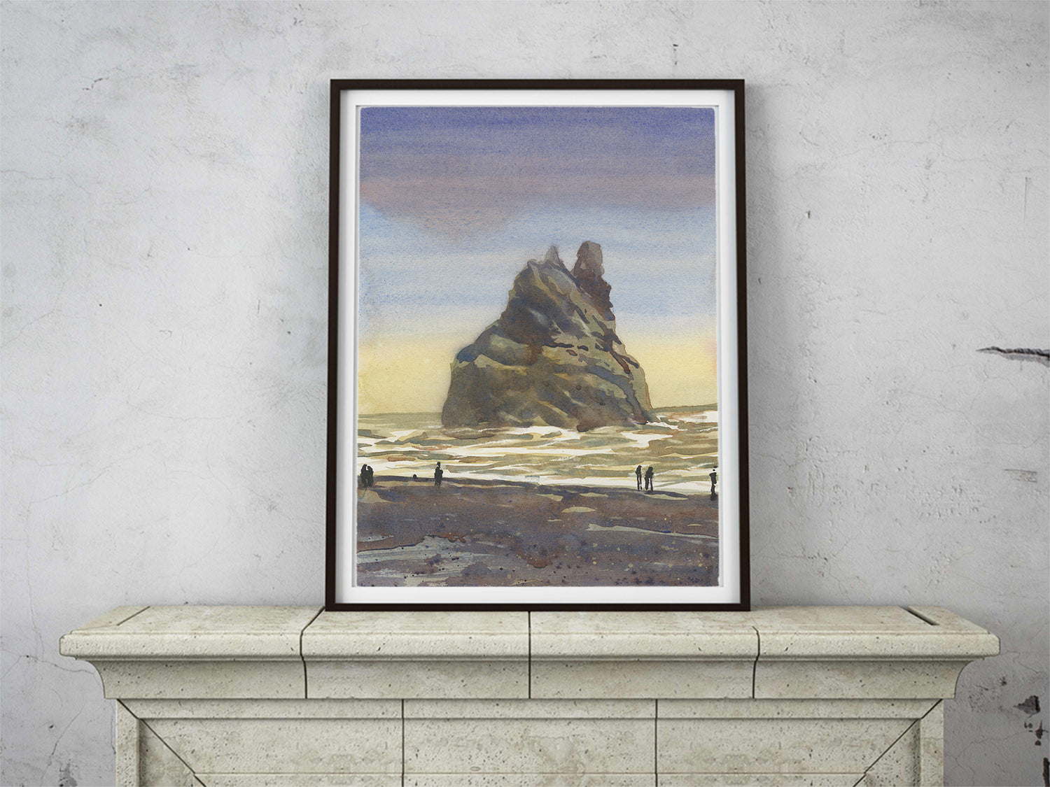 Iceland landscape painting Black Sand Beach near Vik colorful watercolor coastal art giclee (print)