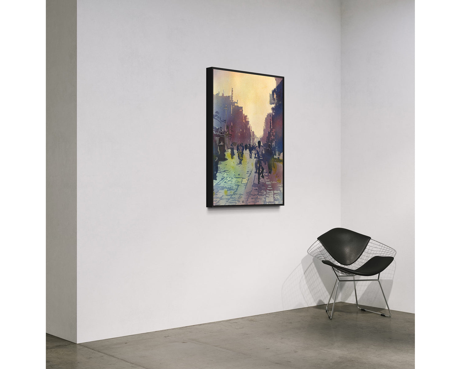 Kathmandu street scene- watercolor painting of people on street in Kathmandu, Nepal. Nepal city Kathmandu Valley artwork fine art painting architecture (print)