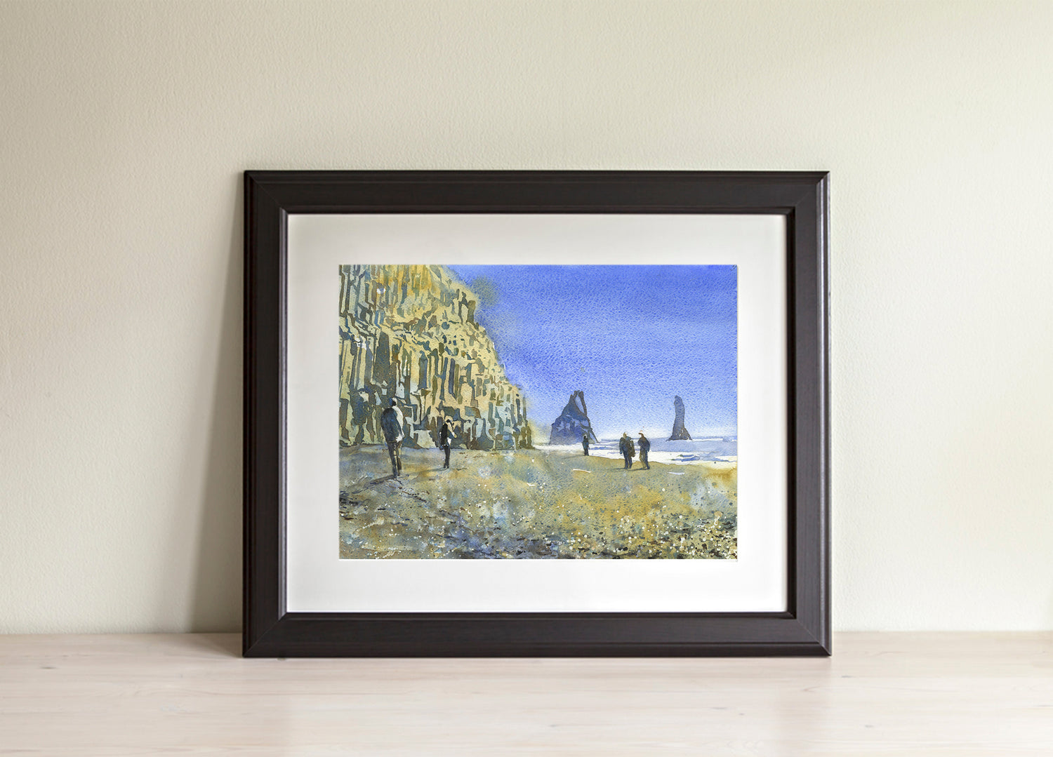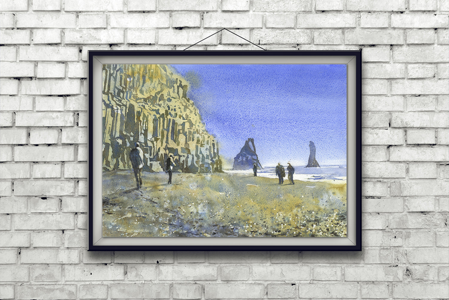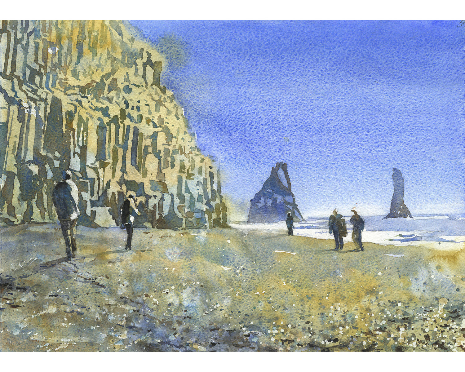 Reynisfjara black beach near the town of Vik- Iceland. Watercolor painting Icelandic coast colorful wall artwork black sand beach (print)