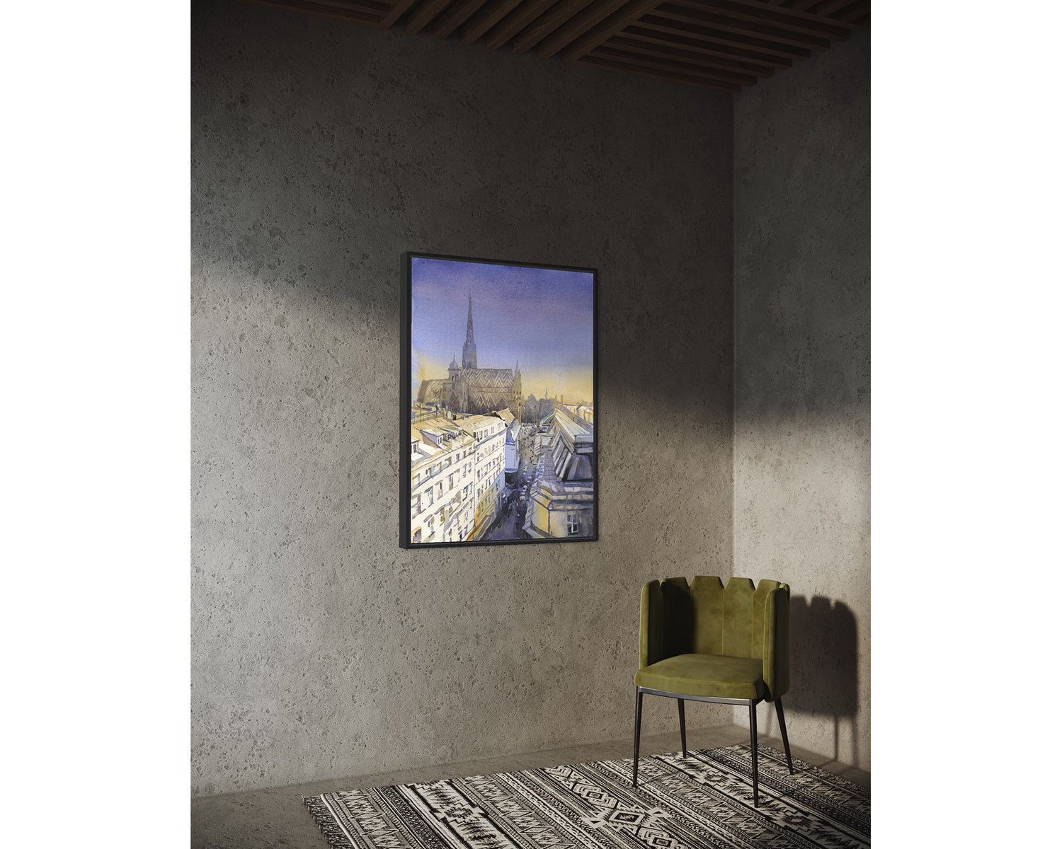 Vienna skyline St. Stephens Cathedral at sunset colorful art for house travel essentials (print)
