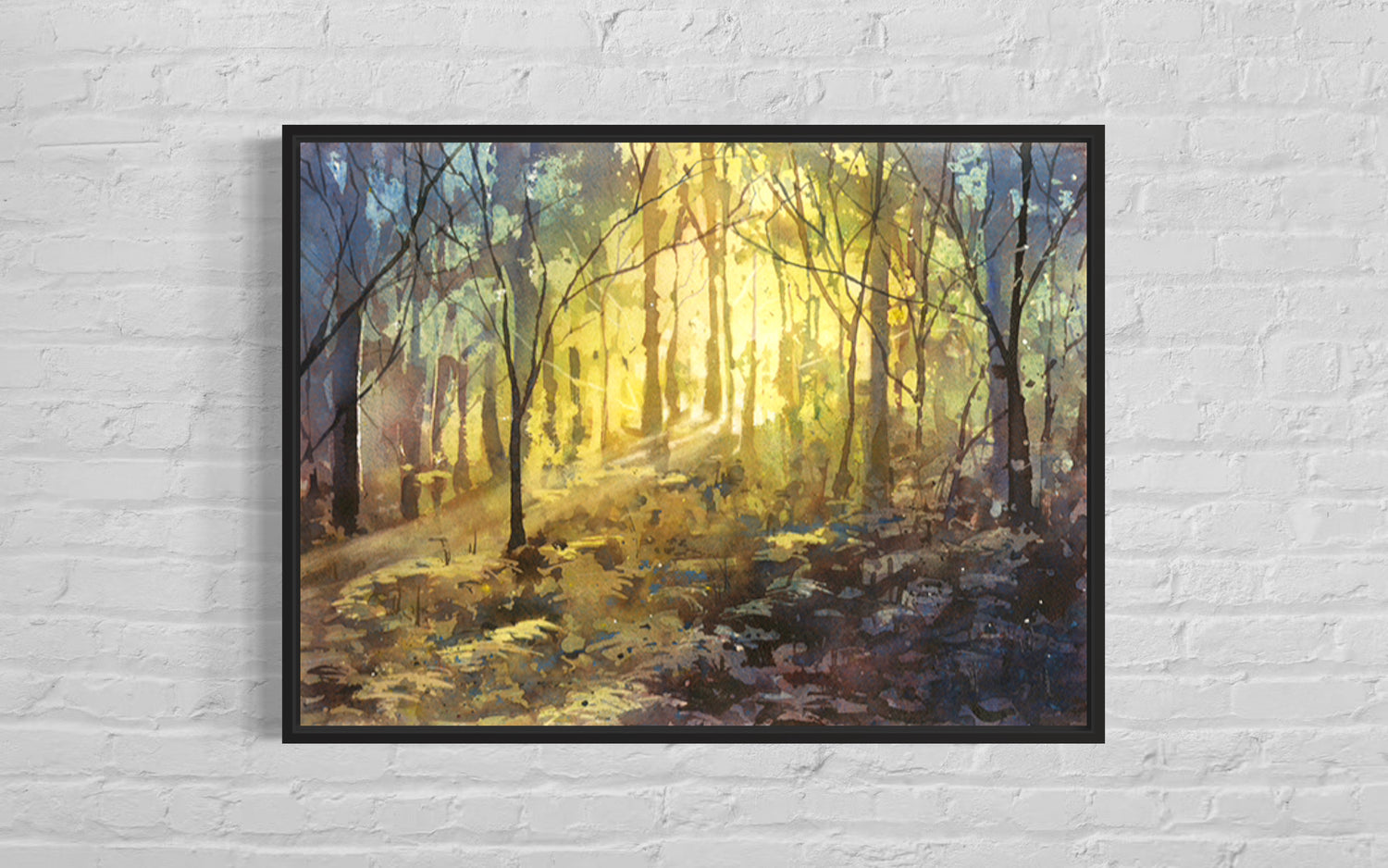 Watercolor landscape painting art for walls sunset artwork trending now housewarming gift (original)