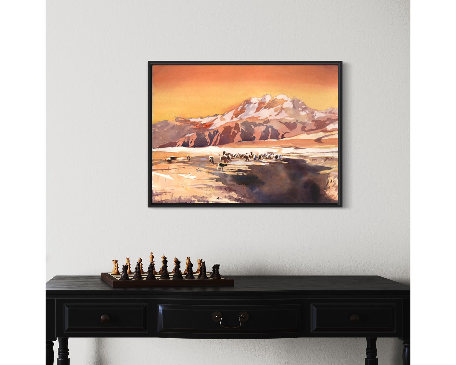 Watercolor landscape Sacred Valley llama grazing mountains South America Peru home decor travel essentials trendy wall art (print)