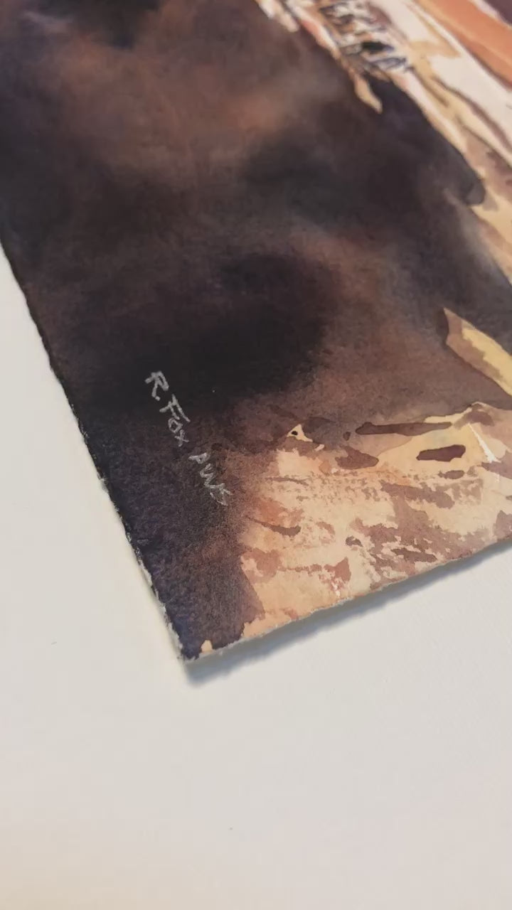 Painted by artist Ryan Fox. Ryan Fox is a signature member of the American and National Watercolor Societies, as well as many state and regional associations. Ryan has won awards in The American Watercolor Society (AWS), Adirondacks National Exhibition of American Watercolors, Missouri Watercolor Society, Georgia Watercolor Society (GWS), and Watercolor Society of North Carolina juried shows. His work has been featured in Watercolor Artist Magazine, Art of Watercolour, and Splash 15, 16, 19 &20 hardcover books published by F+W Media. His instructional DVDs are marketed by Creative Catalyst Productions.