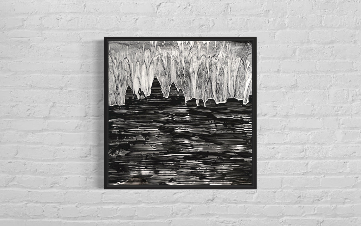 Angkor Wat ruins in Cambodia.  Black and white painting created using magnets and magnetic paint.