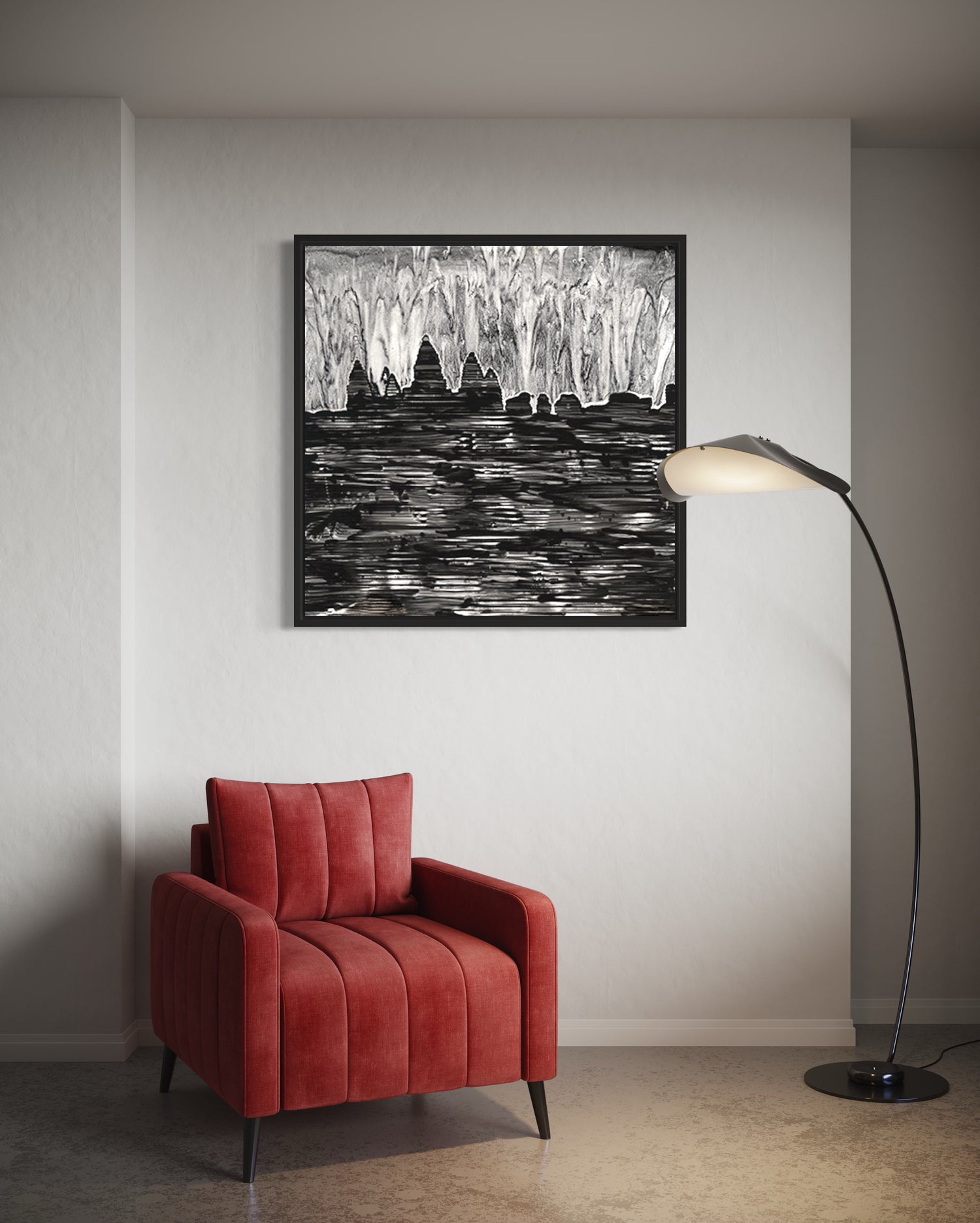 Original Painting 10x10" on 140lb professional watercolor paper. Mounted on black foam core and framed in black wood frame (20x30"). Ready to hang. Hand signed by artist (not pictured).