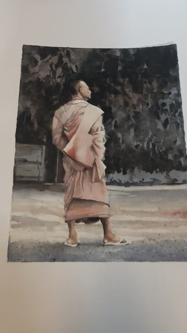 Watercolor painting Buddhist monk Phnom Penh travel essentials trendy wall art Buddhism Cambodia portrait person Buddhism (original art)