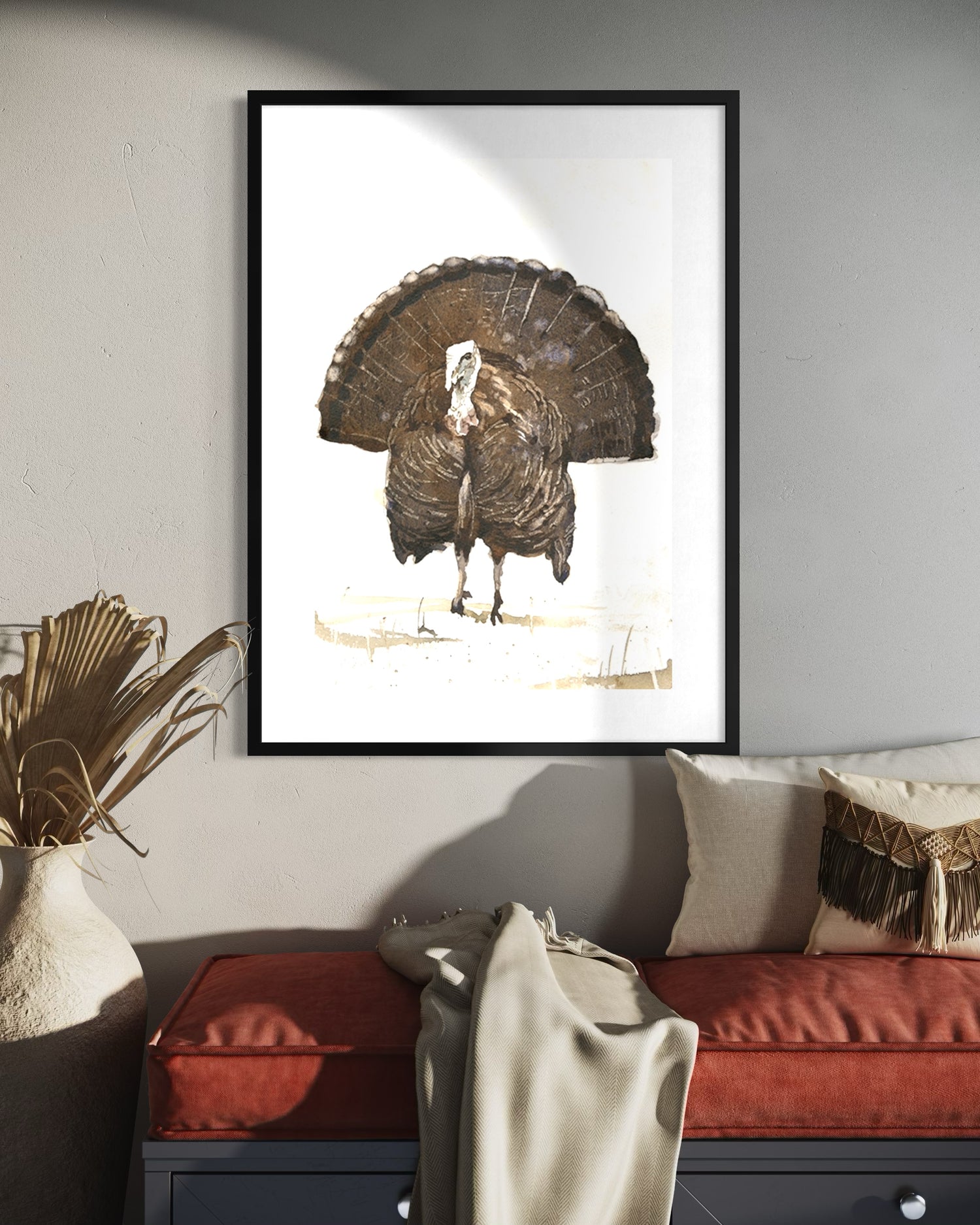 Watercolor painting of Turkey Thanksgiving dinner barnyard animals kids room decor art for house wildlife painting (original)